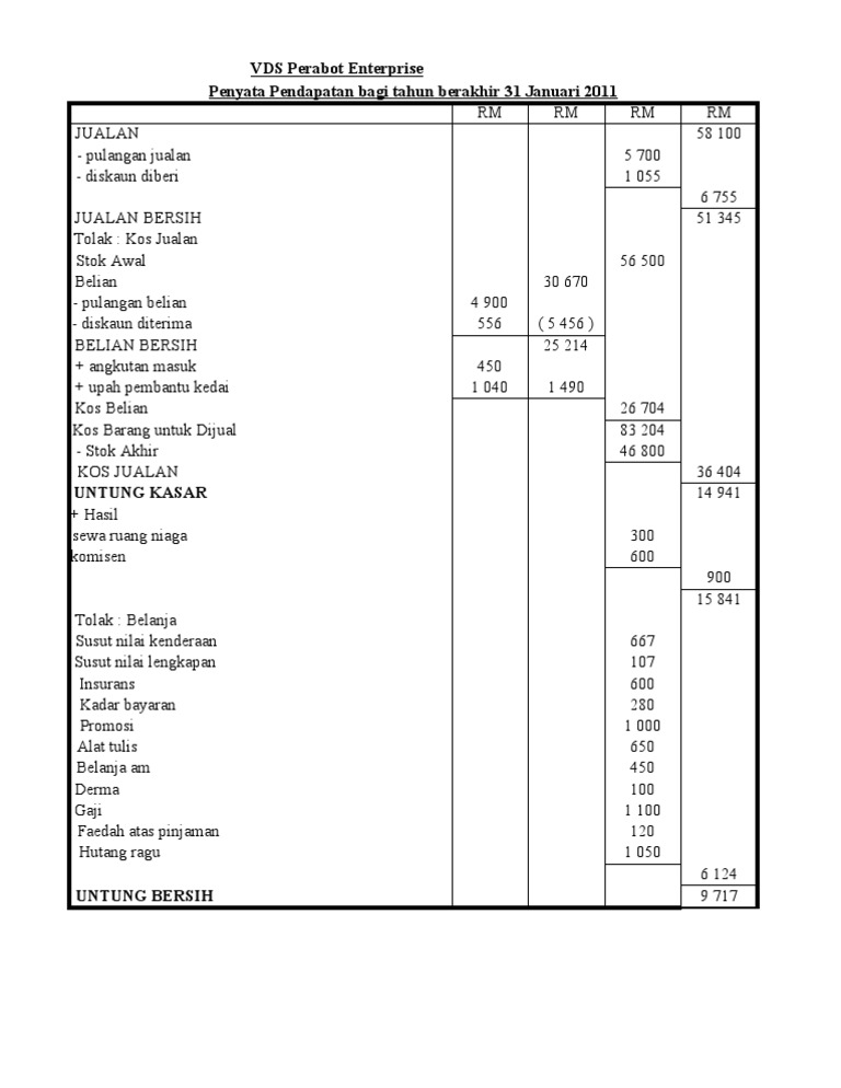 Analisis Penyata kewangan from imgv2-2-f.scribdassets.com Garis dasar asas ditunjukkan dalam contoh berikut pernyataan pendapatan adalah salah satu daripada tiga penyata kewangan utama yang digunakan untuk menilai prestasi dan kedudukan kewangan. Bayaran yang sudah dibuat untuk barang yang belum habis digunakan pada tarikh imbangan dianggap sebagai. Pembetulan maklumat untuk jom cuba, modal awal ialah rm45,140. 11 penyata kedudukan kewangan kumpulan wang amanah awam. Soalan ini diambil daripada set 1 modul halus, soalan 4 muka surat 8. Terdapat sedikit penurunan tetapi kedudukan kewangan syarikat masih kukuh. 3.1 bentuk penyata kewangan 3.1.1 lembaran imbangan lembaran imbangan melaporkan kedudukan kewangan syarikat pada satu titik masa tertentu. A)akaun perdagangan contoh penyata pendapatan.